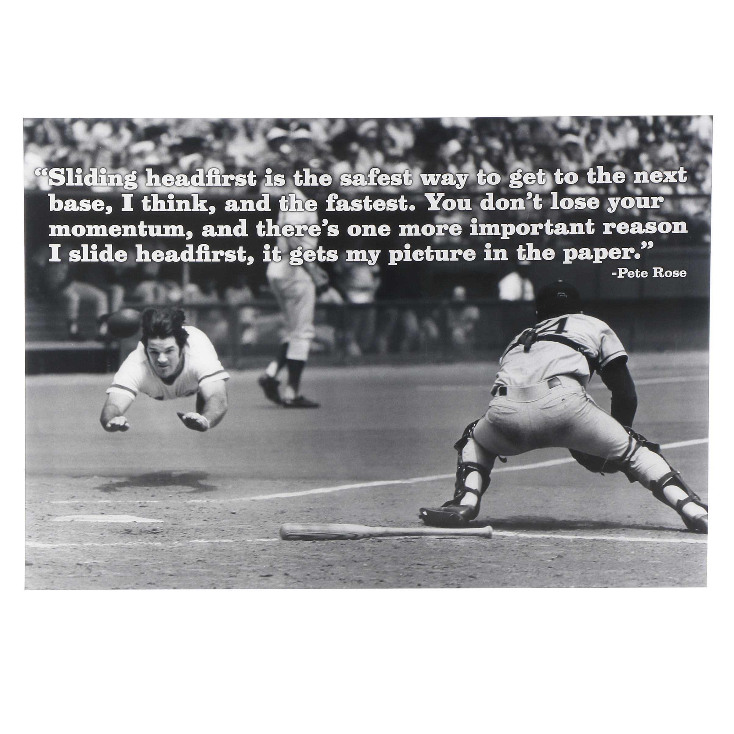 Pete Rose was the best player that Ive seen play the game overall for hustle spirit and the will to want to win. Pete Rose HAND PRINT 3121 Canvas Head First Slide 39999. As in no need to get your nose bashed in at home plate.